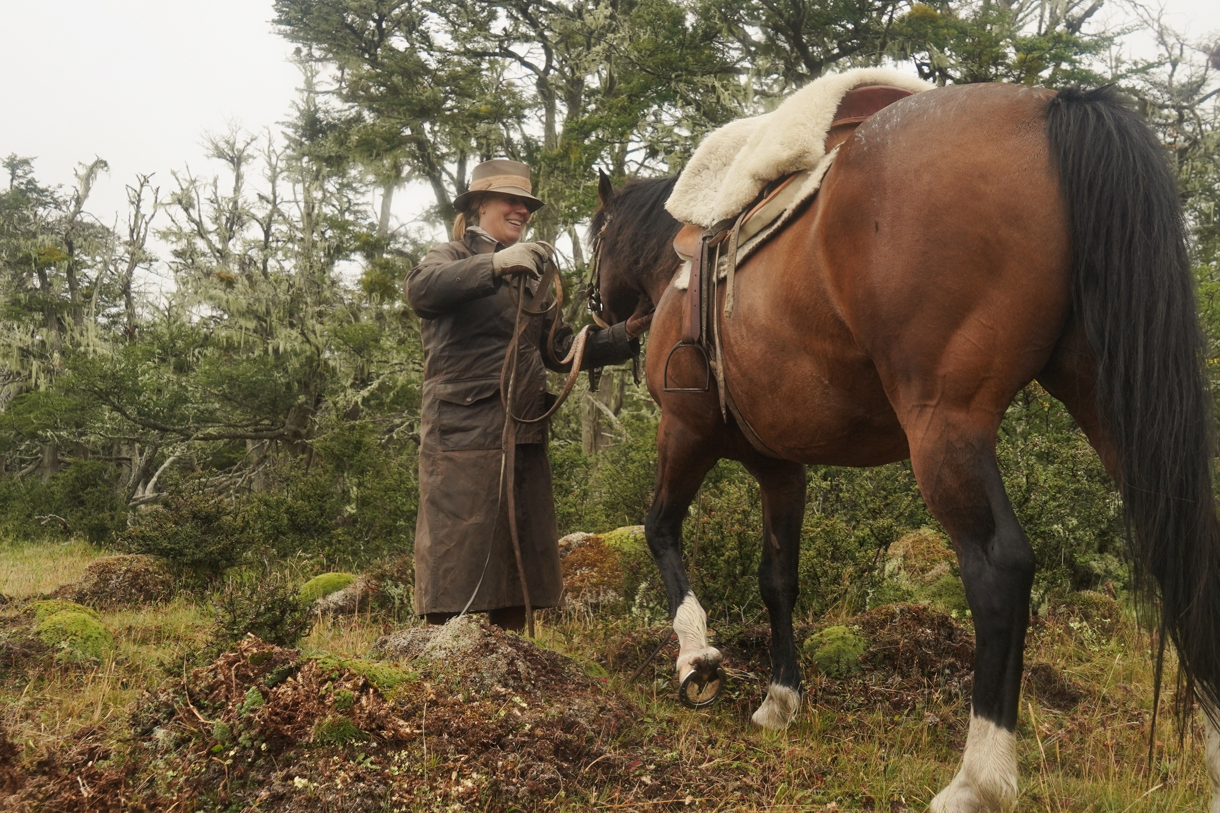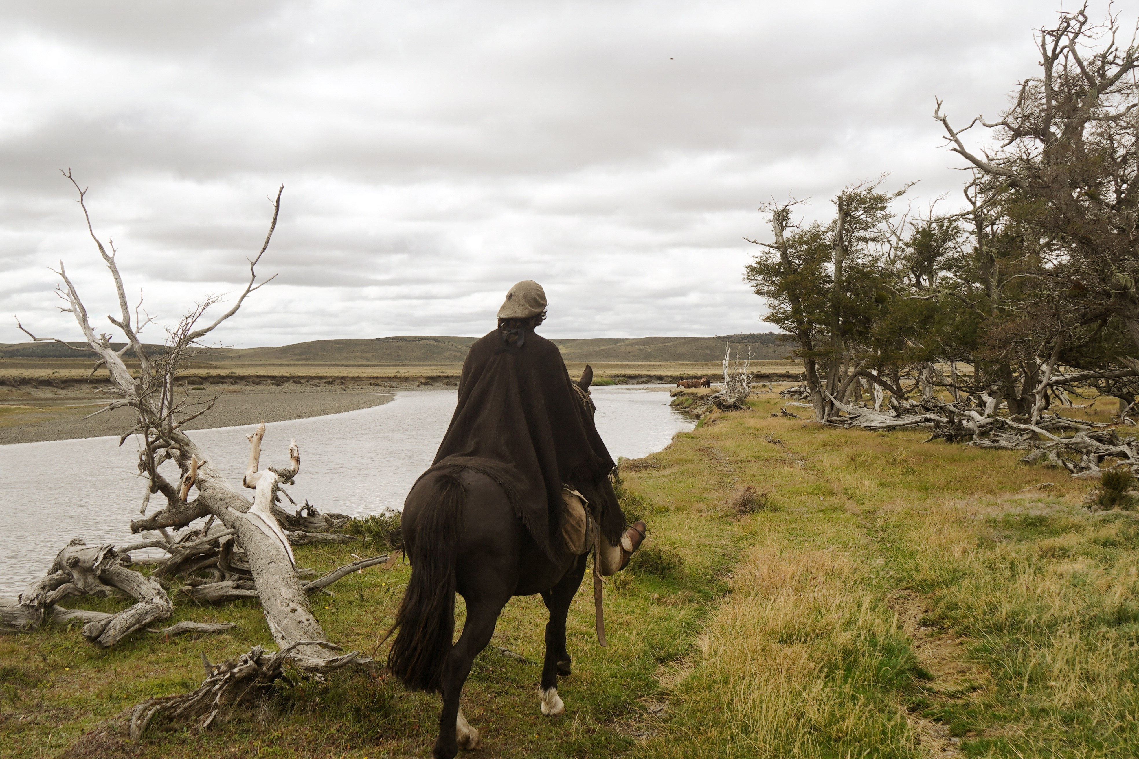 Argentinische „Recado“-Sättel mit Schaffell und traditionellem Rohlederzaumzeug. Pferde In Patagonien reiten wir hauptsächlich auf Criollos, einer argentinischen Rasse, einige davon wurden mit Einflüssen von Quarter Horses, Vollblütern und sogar von Percheron Kaltblütern gekreuzt – eine bunte Mischung also. Die Pferde sind alle darauf trainiert, mit indirekten Zügelhilfen geritten zu werden.