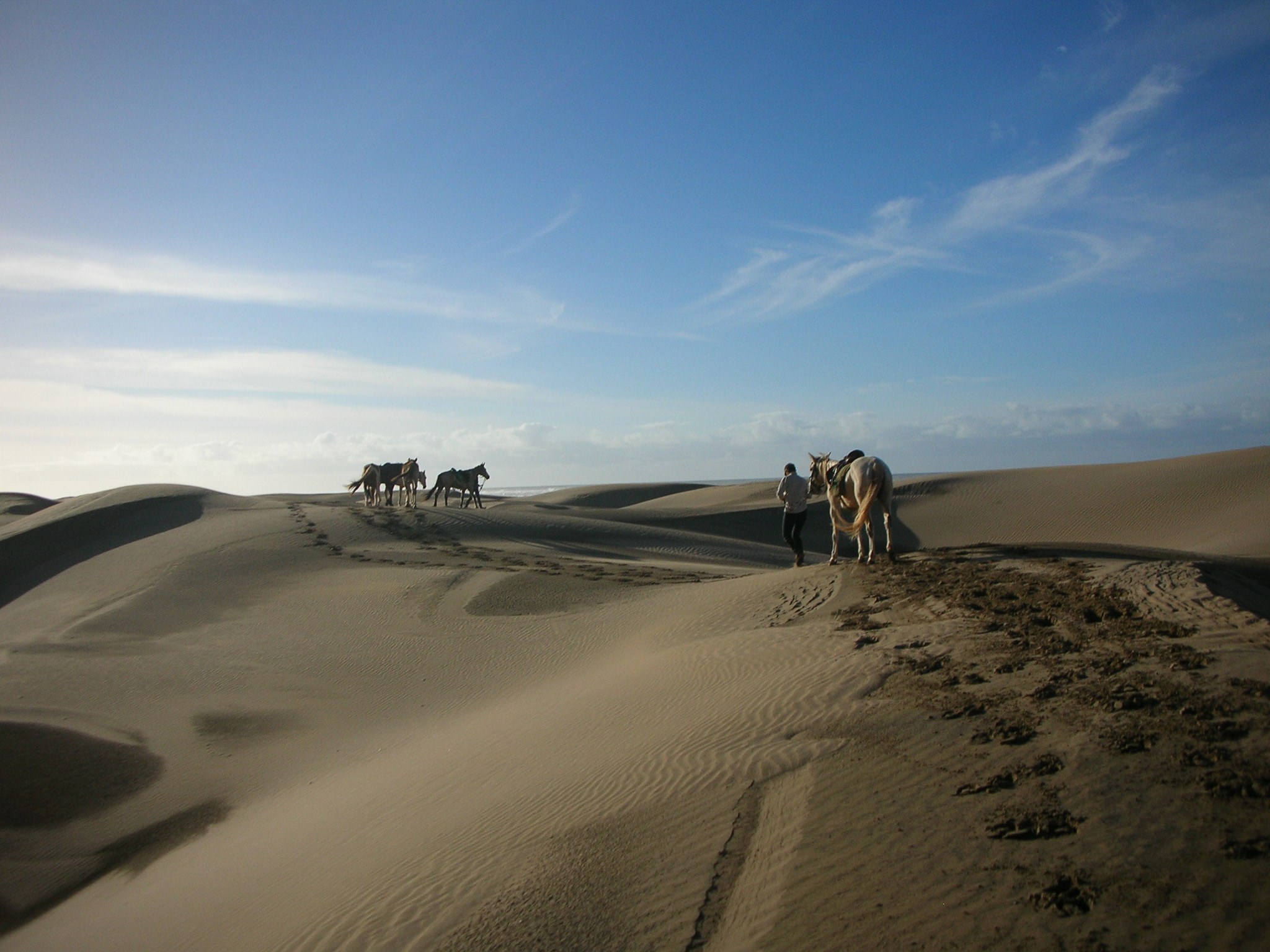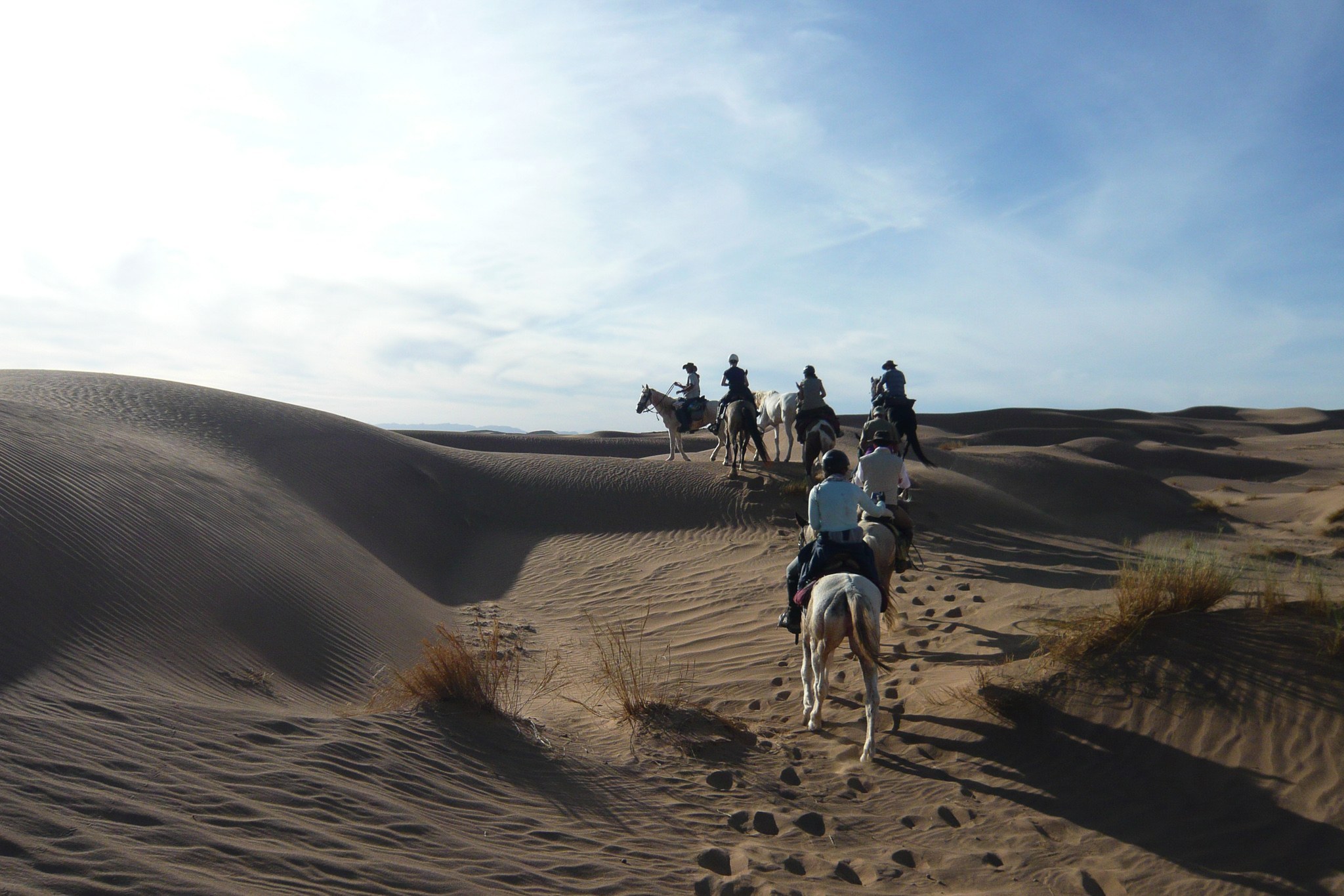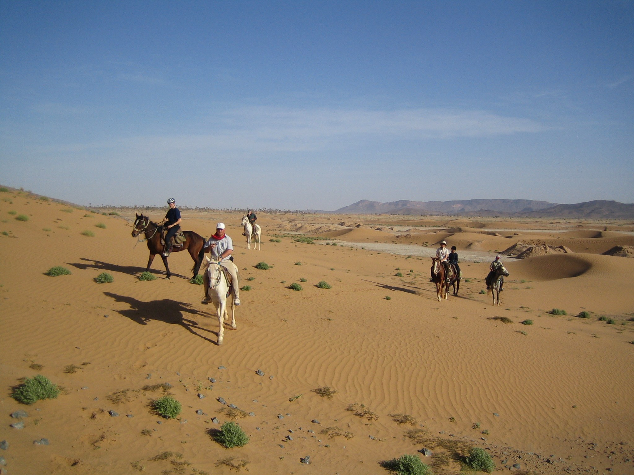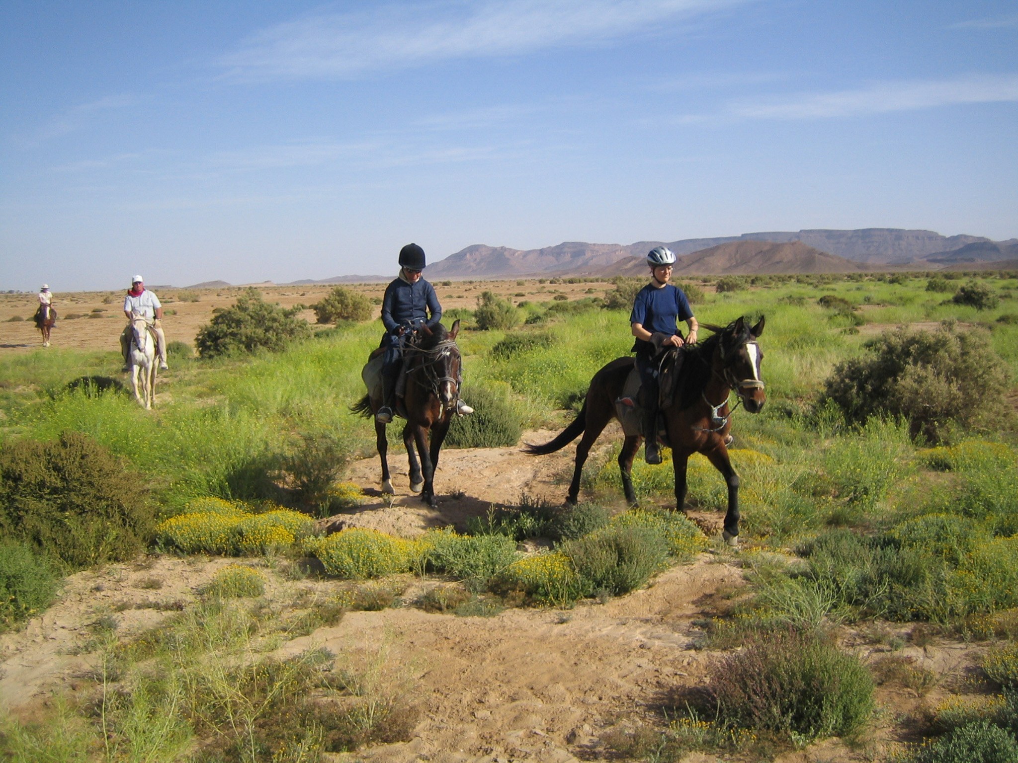 Marokko ist mit seinen unendlichen weiten Ebenen ein hervorragendes Land für endlose Galoppaden - doch Marokko ist mehr als nur sandige Wüstenlandschaft! Wir reiten über kleine, steinige Pfade die besonders geformten Berge hinauf und machen Rast an einigen Salzseen. Zudem reiten wir durch grüne Palmenhaine und besichtigen einige alte Städte mitten im Nirgendwo. Auf unserem Weg reiten wir sogar durch die Grenzregion zu Algerien und können von den Bergen aus in das Nachbarland hineinblicken. Am Ende unserer Reise erreichen wir dann endlich den tiefblauen Atlantik und veranstalten ein Wettrennen am Strand mit den vielen bunten Vogelschwärmen.