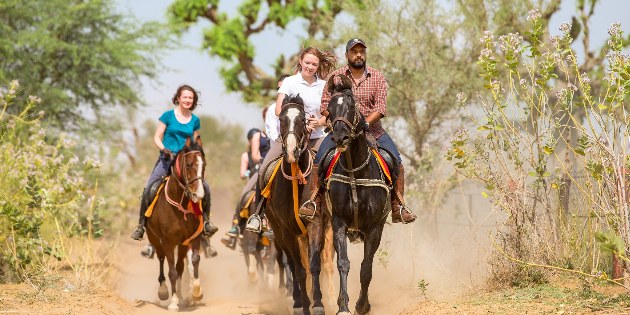 Tagsüber tragen unsere zuverlässigen Pferde Sie durch die Region Shekhawati, bekannt als die größte Open Air Kunstausstellung der Welt. Die Abende verbringen Sie in exklusiven Hotels in ehemaligen Palästen und Havelis, genießen fantastisches Essen und traditionelle Musik.