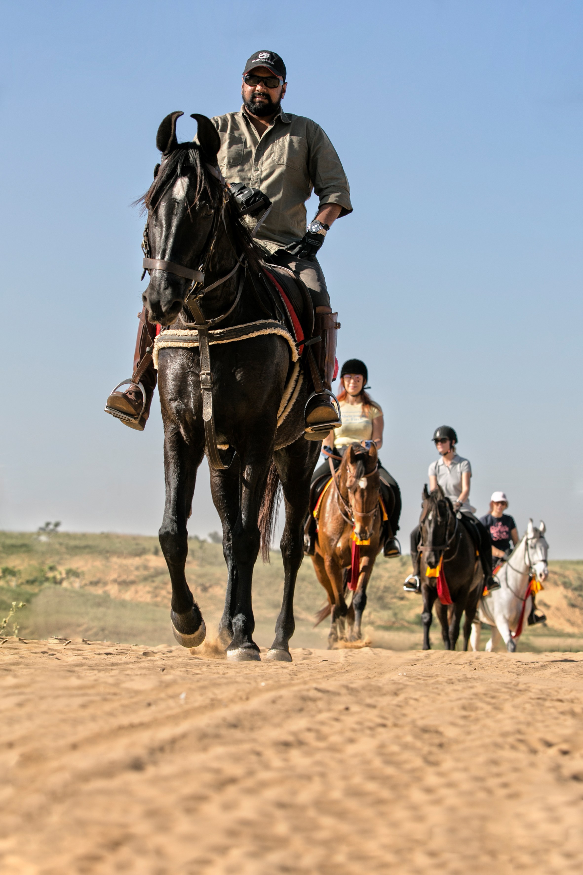 Dieser Ritt ist nur für erfahrene Reiter. Pferd Die meisten unserer Pferde sind reinrassige Marwari Pferde. Die Größe liegt zwischen 1,40 m und 1,62 m. Sie sind Warmblüter und müssen viel mit dem Sitz geritten werden. Die Pferde sind alle sehr weich im Maul. Marwari Pferde sind die einheimische Zucht der Marwar Region ist und werden hauptsächlich in Rajasthan gefunden. Sie sind durch ihre sichelförmigen, nach innen gerichteten Ohren gekennzeichnet und kommen in allen möglichen Farbvarianten vor. Marwari Pferde sind sehr intelligente und sensible Pferde. Sie sind typische Wüstenpferde, schnell und ausdauernd. Sattel Wir verwenden Kavalleriesättel, die aus Leder gemacht werden, das über einen Stahlrahmen gespannt wird. Der Vorteil dabei ist, dass sie nicht auf dem Widerrist der Pferde aufsitzen. Die Sättel lassen Sie tief sitzen und sind für die Pferde angenehm, insbesondere bei langen Ritten. Es wird in der englischen Reitweise geritten. Unterbringung Zum Abendessen werden Sie mit traditionellen Gerichten in verwöhnt.