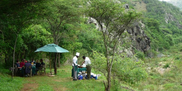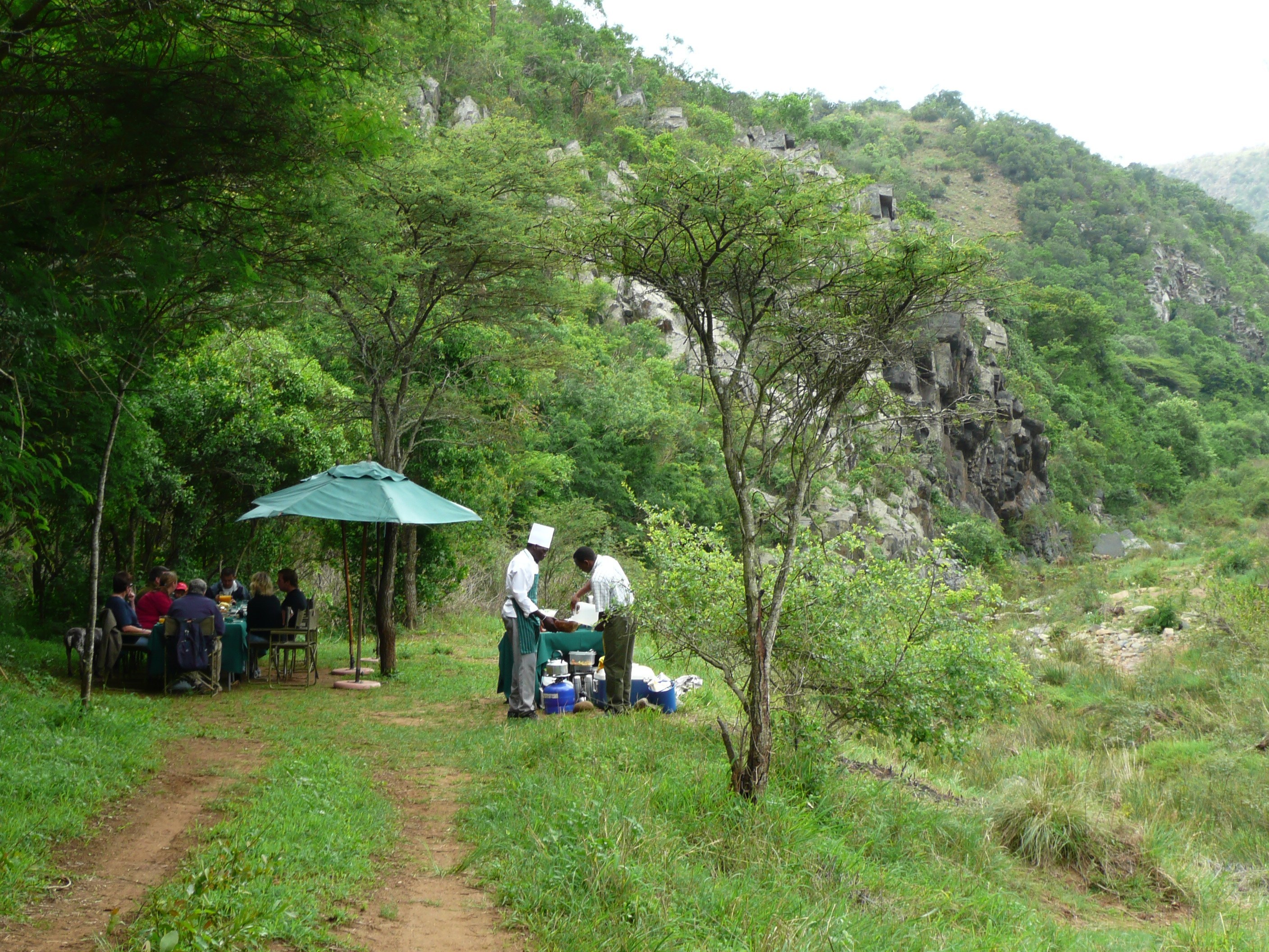 Auf der Pakamisa Lodge wohnen maximal 16 Gäste in 8 weiträumigen Suiten, jeweils mit kleiner Lounge, luxuriösem Badezimmer, Mini Bar, Safe, Tee und Kaffee Ecke sowie eigener Terrasse mit grandioser Aussicht Die Lodge bietet einen traumhaften Panoramablick über die Talebene des Pongola Flusses und die vorgelagerten Gebirge. Die massive Ziegelbauweise und Deckenhöhen bis über 8 m bewirken ein unvergleichlich angenehmes Raumklima. Der Tag klingt am offenen Lagerfeuer unter freiem Himmel aus, begleitet von der einmaligen Musik der rundumliegenden afrikanischen Wildnis. Gourmet – Restaurant “El Prado”, grosszügiges Haupthaus ( Lobby ) mit weitläufigen, hohen Salons, gemütliche Sitzecken, Kamin, Hunter’s Bar, elegante Bibliothek mit deutscher und englischer Literatur, TV – Raum, großer Swimming Pool, offener Feuerplatz ( Boma ). Vom klimatisch besonders begünstigten Hochplateau des Pakamisamassivs aus bietet das Pakamisa Hotel seinen Gästen einen traumhaften Panoramablick über die immergrüne Talebene des Pongolaflusses und die vorgelagerten Gebirge. Der im Italo-Spanischen Baustil vergangener Kolonialzeiten grosszügig errichtete Hotelkomplex beherbergt maximal 16 Gäste; diese residieren in 8 weiträumigen Suiten, elegant ausgestattet mit Zweibett-Schlafzimmer, Salon, Luxusbadezimmer (Bad, Dusche und separates WC), Garderobe und eigener überdachter Veranda. Jede Suite steht unter dem Motto eines speziellen, typisch afrikanischen Wildtieres und ist gemäß diesem Thema mit wertvollen Bildern sowie lokalen Kunstgegenständen liebevoll eingerichtet. Die massive Ziegelbauweise und Deckenhöhen bis über 8 m bewirken ein unvergleichlich angenehmes Rauminnenklima wie man es sonst nur in den legendären Tropenluxushotels vergangener Epochen findet. Im zentralen Main House finden Sie Erholung und Geselligkeit in den weiten Salons, in der riesigen, mehrsprachigen Hotelbibliothek mit ihren seltenen bibliophilen Kostbarkeiten, der gemütlichen Hunter’s Bar sowie der grossflächigen Terrasse mit phantastischem Ausblick bis weit hinein in das Königreich Swasiland. Das grosse Felsenbad mit seinen Sonnendecks und der Poolbar sorgt für zusätzliche Unterhaltung und Entspannung. Im Restaurant El Prado - einem eigenen “Tempel nur für lukullische Genüsse” – wird auch der verwöhnteste Gast kulinarisch zufriedengestellt: vom Frühstück über Mittagslunch und 5-Uhr Tee bei Cocktailmusik bis zum glanzvollen Abenddiner mit Konzertunterhaltung – in stilvoll-gemütlicher Atmosphäre bieten Küche und Keller jeweils vom Feinsten. Der Tag klingt aus am romantischen offenen Lagerfeuer unter freiem Himmel, begleitet von der einmaligen Musik der rundumliegenden afrikanischen Wildnis. Thanda Tented Camp Thanda bedeutet in der Sprache der Zulu „Liebe“. Für ein besonders romantisches, traditionelles Safari-Erlebnis gibt es nichts Besseres als Zeltcamps, und das Thanda Tented Camp verkörpert die klassische afrikanische Safari mit fünfzehn luxuriösen Safarizelten in einer eindrucksvollen Wildnisumgebung, ergänzt durch flackerndes Feuerlicht und Laternen, die nachts den Weg beleuchten. Nichts ist vergleichbar mit dem Gefühl, sich in der afrikanischen Wildnis zu befinden, und dieses private Wildreservat mit den „Big Five“ bietet nicht nur ein großartiges Safari-Erlebnis, sondern wurde auch für seine einzigartigen Unterkünfte mit zahlreichen internationalen Preisen ausgezeichnet. Das Zeltcamp ist zwar eingezäunt, um Großwild fernzuhalten, aber die Gäste erleben dennoch hautnah das Leben in der Wildnis und genießen einen herrlichen Blick auf das Reservat. Das Thanda Tented Camp bietet ein nostalgisches Safari-Erlebnis in jeder Hinsicht. Das ist Buschleben, wie es die Natur vorgesehen hat: offen und einladend, mit unvergleichlichen Ausblicken, Düften und Geräuschen. Jedes Zelt verfügt über eine eigene Sonnenterrasse sowie ein eigenes Badezimmer aus Segeltuch. Für Gäste in den Flitterwochen, zu besonderen Anlässen oder für Familien gibt es das luxuriöse Jabula-Safarizelt. Es verfügt über ein Kingsize-Bett und einen separaten Wohnbereich, ein eigenes Badezimmer, eine Außendusche, ein Planschbecken und eine spektakuläre Aussicht. Im zentralen Bereich gibt es einen Infinity-Pool, einen Boma, um abends am Feuer zu sitzen oder ein Busch-Barbecue zu genießen, sowie einen stimmungsvollen Lounge- und Essbereich im Hemingway-Stil.