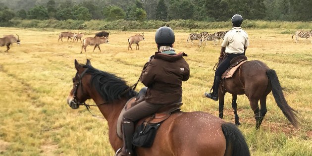 Das Gewichtslimit liegt bei 85 Kilogramm. Unter 65 kg um bei der Jungpferdearbeit zu helfen. Mindestalter Das Mindestalter für dieses Programm ist 16 Jahre. Minderjährige müssen jedoch bei der Einreise nach Eswatini die schriftliche Erlaubnis aller erziehungsberechtigter Personen nachweisen können. Reiterliches Können Dieses Programm eignet sich nur für erfahrene Reiter:innen, die ihr Pferd jederzeit selbständig kontrollieren können und Erfahrung im eigenständigen Trainieren und Gymnastizieren von Pferden haben. Erfahrungen mit Jungpferden sind von Vorteil. Aufenthaltsdauer Das Programm ist buchbar für mindestens 2 Wochen. Zusätzliche Kosten W-Lan ist aufgrund der Hohen Kosten in Eswatini nicht inklusive. Es gibt in den Camps Gutscheine für das W-Lan oder ihr könnt euch eine lokale SIM-Karte ausleihen. Wäsche waschen ist im Camp nur per Hand möglich und kostet einen kleinen Beitrag. Sicherheit Alle Guide haben ein erste Hilfe Training absolviert und sind über Funk mit unseren Basiscamps verbunden. Auf dem Ritt sind wir zwar relativ abgeschieden, jedoch sind fast alle Gegenden im Notfall gut mit dem Auto zu erreichen. Gelände/Landschaft/Tiere Das Mlilwane Wildlife Sanctuary erstreckt sich über eine Übergangszone zwischen Grassavanne und Berge und bietet eine sich ständig verändernde Landschaft mit verschiedenen Lebensräumen und Arten. Entlang der Wasserläufe können Flusspferde, Krokodile, Fischadler und viele weitere Wasservögel vom Sattel aus genossen werden. Auf der Fahrt durch die Ebenen kommen wir Gnus, Zebras, Nyalas, Pferdeantilopen, Blessböcken und Impalas nahe. Warzenschweine sind eine ständige Quelle der Unterhaltung in Camp und darüber hinaus. Ursprünglich eine kommerzielle Farm und Zinnmine und nun das erste Naturschutzgebiet in Eswatini, sind wir mit faszinierenden historischen Sehenswürdigkeiten wie Execution Rock, Zinnminen, Royal Graves, Bushman Cave und dergleichen gesegnet. Es ist faszinierend zu sehen, wie die Natur ihren Raum zurückerobert hat, und doch wie wirkungsvoll menschliche Aktivitäten sind. Klima Das Klima ist subtropisch, gemäßigt bis heiß, je nach Höhenlage. Die Regenzeit geht von Oktober bis April. In dieser Zeit kann es zu Überschwemmungen kommen. Die Temperaturen können nachts auf fast Null fallen und der Wind kann überraschend stark und sehr kühl sein, daher sind Windjacken erforderlich. Die Tage sind in der Regel Temperaturen zwischen 17° - 25° Celsius, wobei einige Tage darüber steigen oder darunter fallen. Unsere Winterwandermonate sind im Allgemeinen blauer Himmel und sonnig, aber es besteht immer die Möglichkeit von Regen und Nebel. Bitte beachten Sie, dass wir nicht reiten, wenn der Boden zu rutschig ist, was nach Regen passiert. Kleidung Bitte bringen Sie keinen Hartschalenkoffer, sondern einen Rucksack oder eine Sporttasche mit, wenn möglich sollte das Material wasserdicht sein. Am Besten bring Sie auch Kleidung mit in der Sie vorher mindestens schon einmal geritten sind, um Ausschläge und Blasen zu vermeiden. Um unnötiges Aufscheuern an einer Stelle zu vermeiden, sollten Sie mindestens zwei Reithosen dabei haben. Alle Klamotten sollten Safarifarben sein, also beige, khaki oder natürliches grün. Umso dunkler die Farben sind, desto besser. Vermeiden Sie jedoch die Farben weiß und rot zu tragen. Da fast jeder Baum in Afrika Dornen besitzt, sollten Sie lange Kleidung tragen. Wir haben Ihnen hier ein Packliste von den wichtigsten Sachen zusammen gestellt: - 2-3 Reithosen - T-Shirts und Langarmshirts, Safarifarben - Bequeme Kleidung für den Abend - Reitschuhe - Sportsandalen - Reithelm - Chaps - eine leichte Regenjacke - einen dünnen Schal - Reitsocken - Unterwäsche - kurze Hosen - Sonnenbrille und Sonnenschutzcreme - Lippenpflegestift - Fernglas - Kamera mit einer Hülle die keinen Staub durchlässt - Taschenlampe und Stirnlampe - Insektenschutzmittel - Wasserflasche (750 ml; Durchmesser max. 7 cm) Fotos Wir lieben es, auf unseren Trails Fotos zu machen und teilen diese gerne mit unseren Gästen! Gerne kannst du einen USB Stick mitbringen, damit die Fotos direkt geteilt werden können. Gesundheit Laut auswärtigem Amt ist bei der direkten Einreise aus dem Gelbfieberendemiegebiet ist für alle Reisenden mit einem Lebensalter über einem Jahr der Nachweis einer gültigen Gelbfieberimpfung notwendig (Internationales Impfzertifikat, lebenslange Gültigkeit). Das gilt auch für eine Anreise im Transit über Addis Abeba oder Nairobi, wenn der dortige Aufenthalt länger als 12 Stunden beträgt. Reisende, die sich vor Einreise nach Eswatini in Südafrika aufgehalten haben und nicht zuvor aus dem Gelbfieberendemiegebiet nach Südafrika eingereist sind, benötigen kein Impfzertifikat. Achten Sie darauf, dass sich bei Ihnen und Ihren Kindern die Standardimpfungen gemäß Impfkalender des Robert-Koch-Instituts auf dem aktuellen Stand befinden. Als Reiseimpfungen werden Impfungen gegen Hepatitis A und Typhus, bei Langzeitaufenthalt oder besonderer Exposition auch gegen Hepatitis B und Tollwut empfohlen. Bei Ankunft im Camp muss von jedem Volontär ein Indemnity Formular unterschrieben werden, in dem ihr erklärt, dass alle Aktivitäten inkl. das Reiten auf eigenes Risiko durchgeführt werden. Big Game Parks bemühen sich, ein sicheres Arbeitsumfeld zu schaffen. Außerdem erklärt ihr auf dem Formular, alle Angaben bzgl. Gesundheitszustand und Reiterfahrungen wahrheitsgemäß gemacht zu haben. Eine ausreichende Auslandskrankenversicherung, die das Reiten sowie den Rücktransport National und International abdeckt, ist für diese Reise unbedingt notwendig! Anreise Internationale Gäste fliegen am Besten nach Südafrika, zum OR Tambo Flughafen in Johannesburg. Von dort aus gibt es Anschlussflüge, oder Shuttlebusse. Empfohlen wird der Shuttle ab ORT um 9:30 Uhr, Ankunft in Ezulwini um 14 Uhr. Am Abreisetag erfolgt der Transfer rechtzeitig zum Shuttle um 10:30. Solltest du einen Transfer außerhalb dieser Zeiten ben