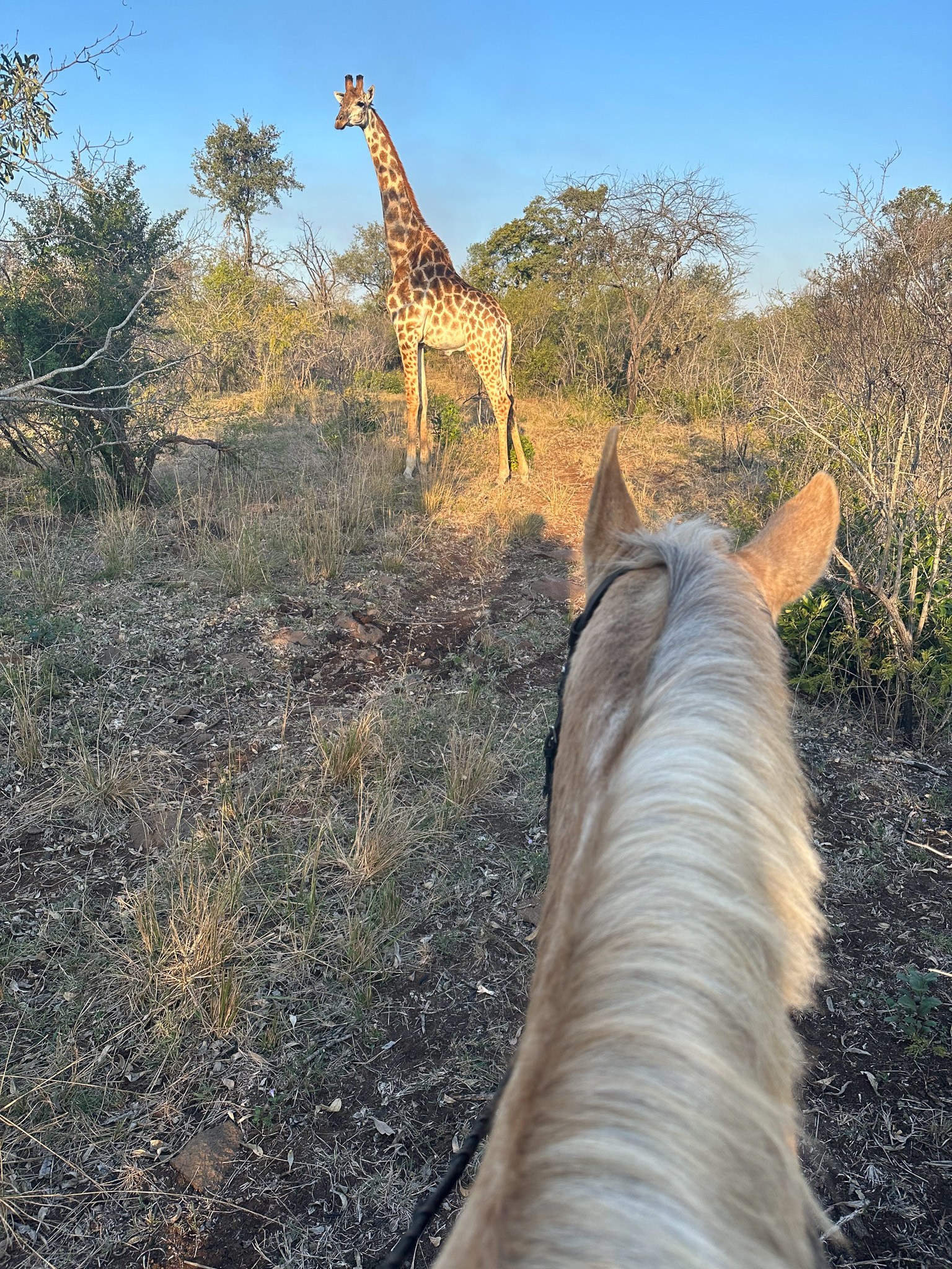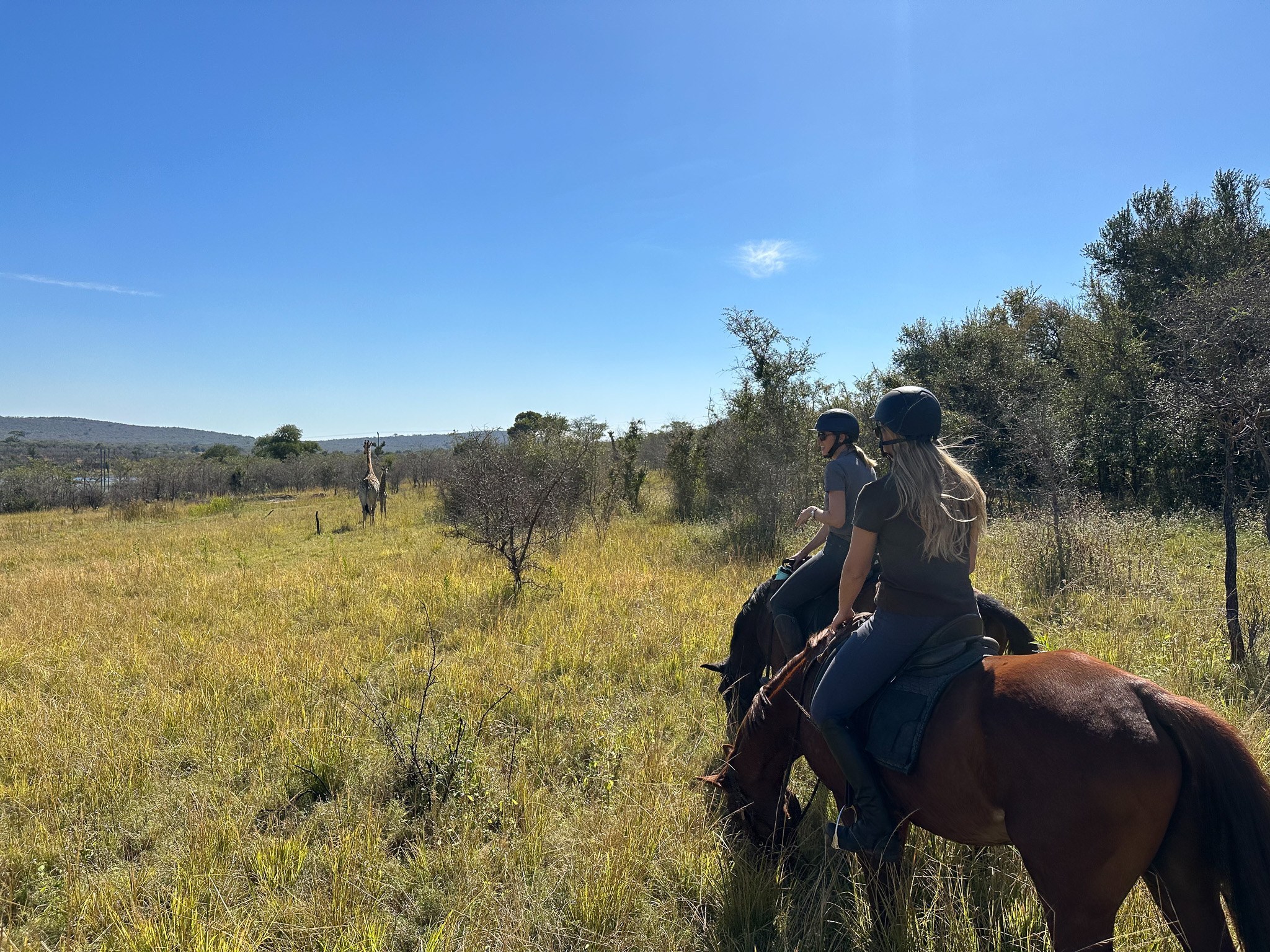 Mauricedale ist ein Reservat in der Nähe des Krüger Nationalparks. Hier gibt es viele Antilopenarten, Gnus, Giraffen, Zebras und Hippos. Ausflüge in den Krüger Nationalpark können organisiert werden (gegen Aufpreis). Nkomazi befindet sich südlich von Nelspruit und besteht aus einer dramatischen, offenen Fläche mit spektakulären Landschaften und Ausblicken. Hier gibt es Löwen, Elefanten, Büffel, Leoparden, Geparden, Elands, Antilopen, uvm.! Ab und zu bietet The Horse Safari Company Tagesausritte für externe Besucher an, die von den Volontären begleitet werden. Wenn keine Gäste da sind, müssen wir die Pferde fit halten und an die Tierwelt gewöhnen. Erfahrene Reiter:innen, mit mindestens 5 Jahren Reiterfahrung können nach einer erfolgreichen Bewerbung über einen Zeitraum von 2 Wochen auf der Farm mithelfen. Kurz & Knapp