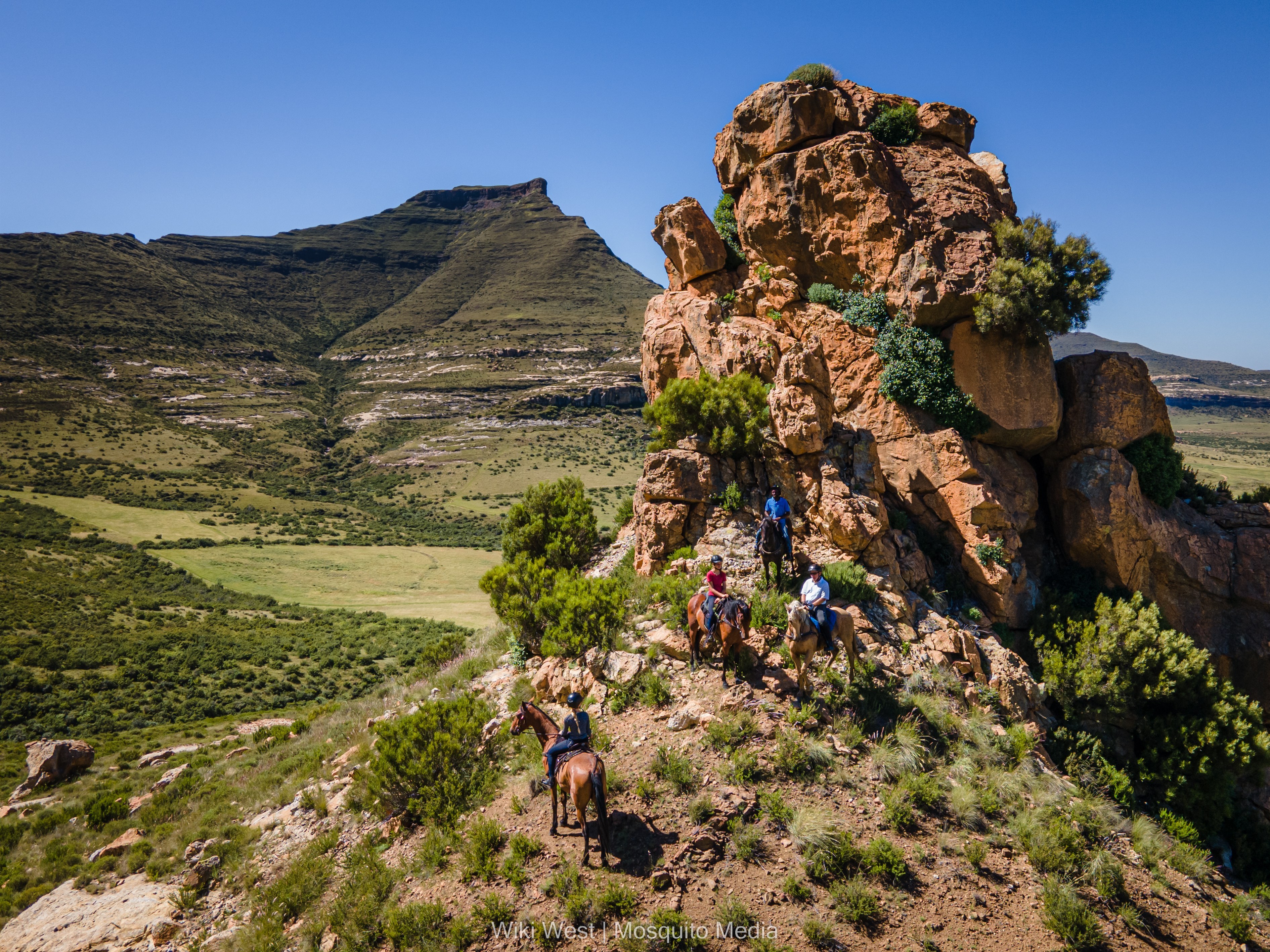 Die Pferde von Moolmanshoek, hauptsächlich Boerpferde, sind von klein auf in den Bergen rund um die Farm aufgewachsen. Dies macht sie unglaublich trittsicher auch auf den unglaublichsten Bergpfaden. Sie klettern Sandsteinfelsen hinauf, navigieren auf den anspruchsvollsten Pfaden und sind hervorragende Athleten, die von allen respektiert werden. Die Pferde sind rassetypisch trittsicher und stabil und viele der Pferde sind auch für Anfänger geeignet sodass auch Reiter mit sehr wenig Erfahrung einen sicheren Ritt durch das Reservat genießen und den Wildtieren nahe kommen können. Es gibt speziell trainierte Gangpferde und Distanzpferde, bei denen erfahrene Reiter am Training teilhaben können.