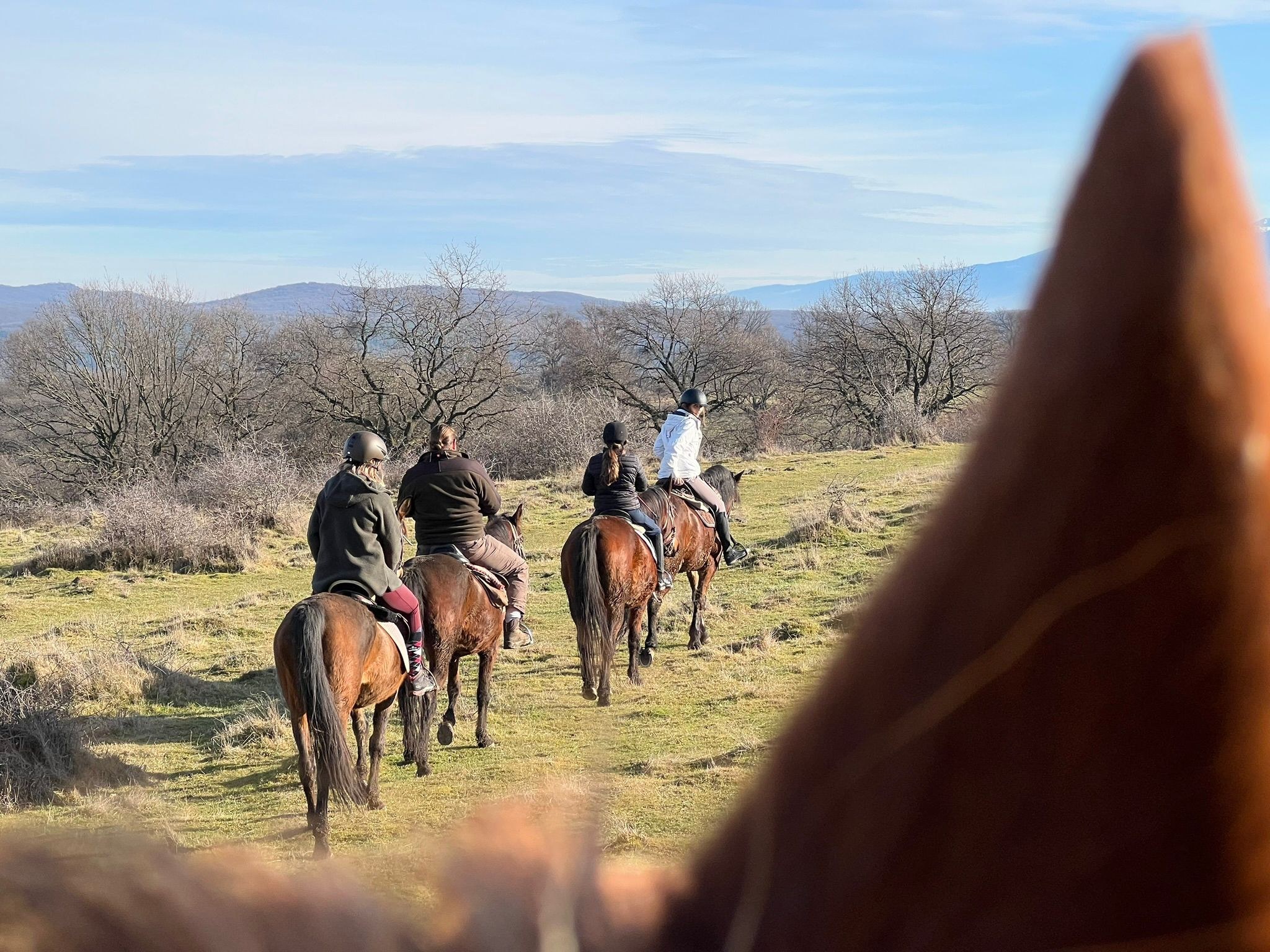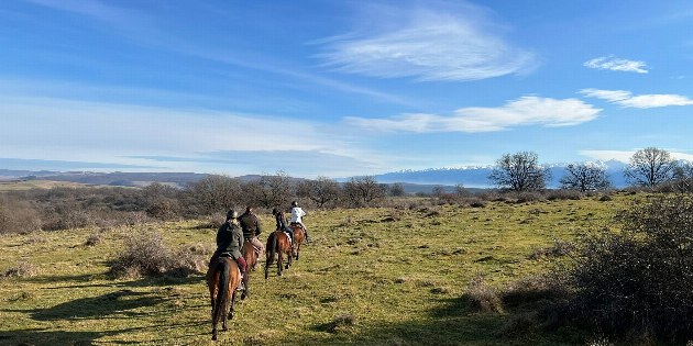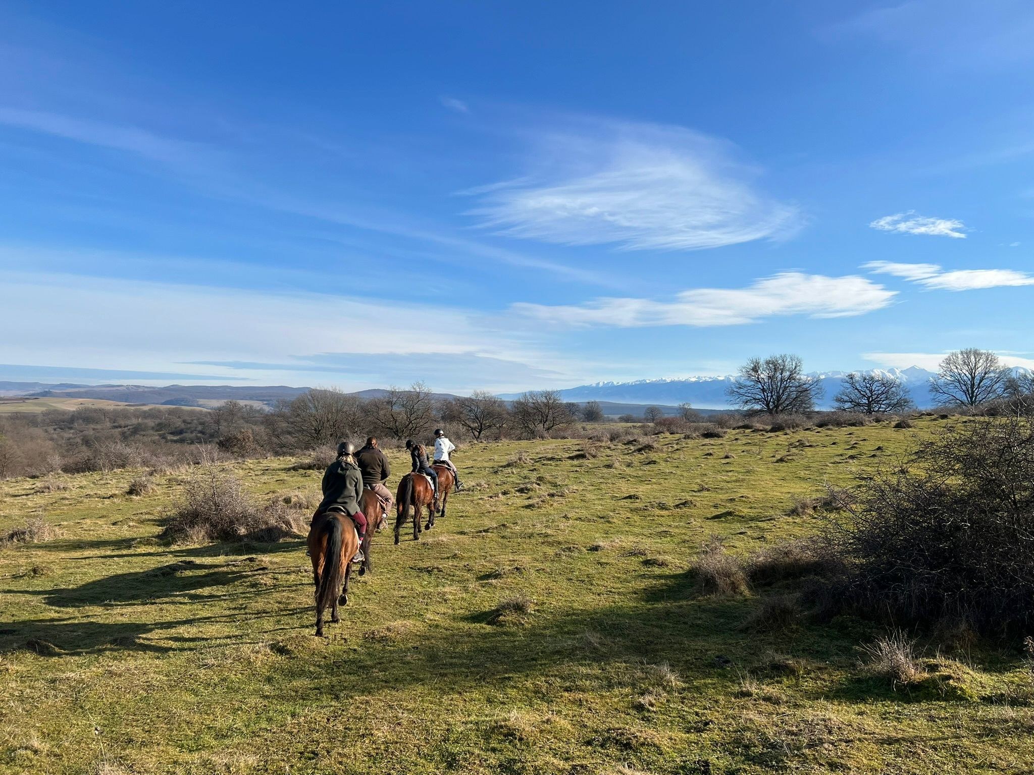Teos Pferde leben die meiste Zeit des Jahres in der Herde. Sie sind gut ausgebildet und alle aufgrund Ihrer Freundlichkeit und positiven Eigenschaften ausgewählt. Teo hat eine Passion für die Zucht und zieht viele seiner Reitpferde selbst. Die Reitrouten können an die Bedürfnisse privater Gruppen (ab 4 Reitern) mit unterschiedlichen Niveaus angepasst werden, andernfalls werden Sie mit anderen Reitern für das Standardprogramm zusammengeführt. Die Reitroute ist je nach Jahreszeit flexibel – die Winter hier sind kalt und die Sommermonate können heiß werden! Das Reiten findet fast ausschließlich im Gelände statt und es gibt viele Möglichkeiten, unterwegs zu traben und zu galoppieren. Kurz & Knapp