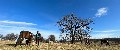 Die Herde besteht aus einer bunten Mischung aus einheimischen Arbeitsrassen, Arabern und Lipizzanern. Teo hat eine Passion für die Zucht und zieht viele seiner Reitpferde selbst auf. Die Pferde leben den Großteil des Jahres draußen in der Herde.