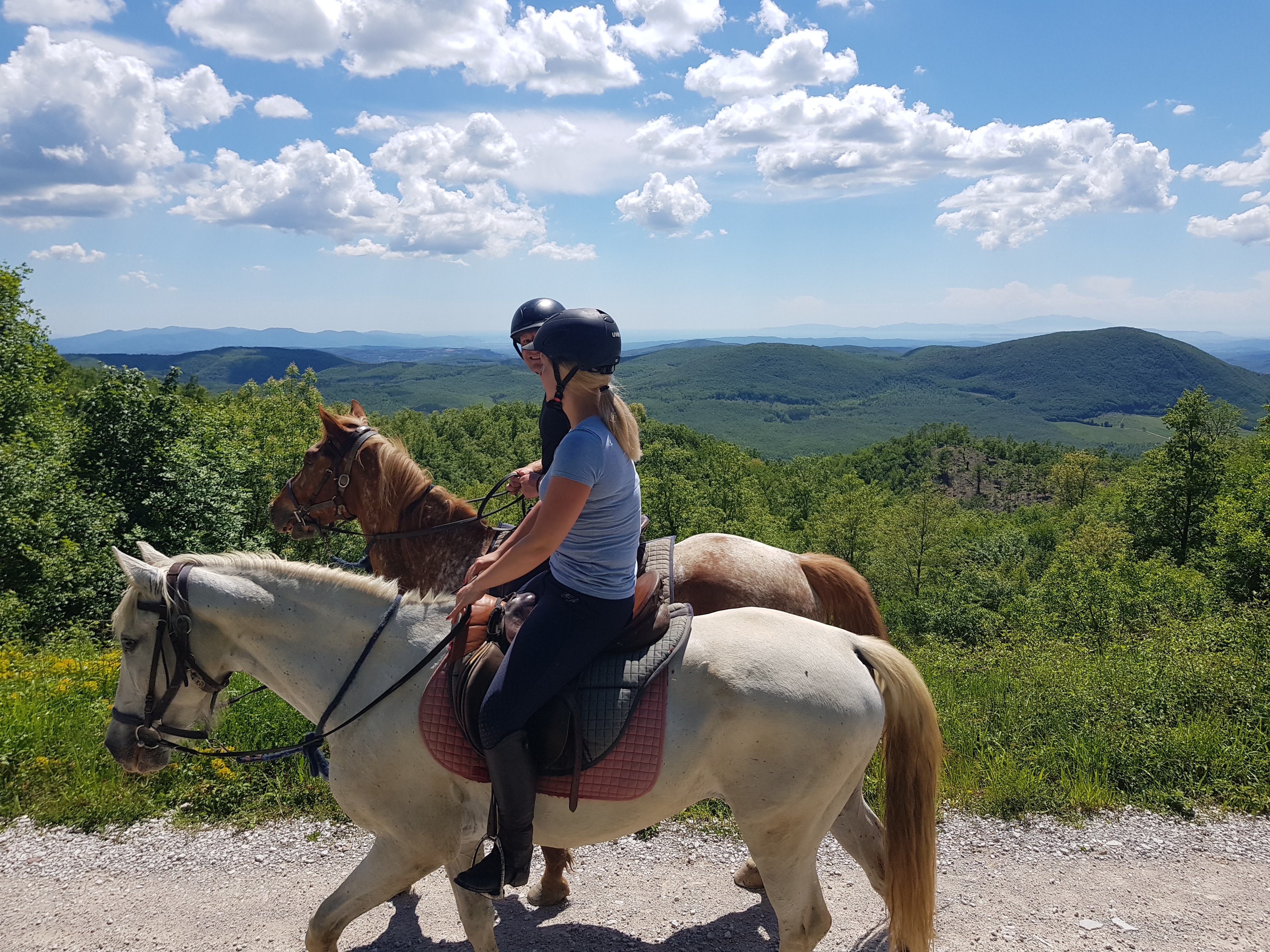 Die Pferde unterschiedlicher Rassen leben das ganze Jahr über in Herdenhaltung auf der Koppel. Es handelt sich um sehr ausgeglichene und trittsichere Pferde unterschiedlicher Größen (kleine Spanier bis große Maremmano Pferde), die englisch geritten sind. Es gibt Englisch- bzw. Trekkingsättel und es wird viel Wert daraufgelegt, dass es den Pferden gut geht. Generell wird eher mit lockeren Zügeln und ohne Sporen oder Gerte geritten. Eine große Portion Pferde- und Tierliebe solltet ihr für den Job in der Toskana mitbringen!