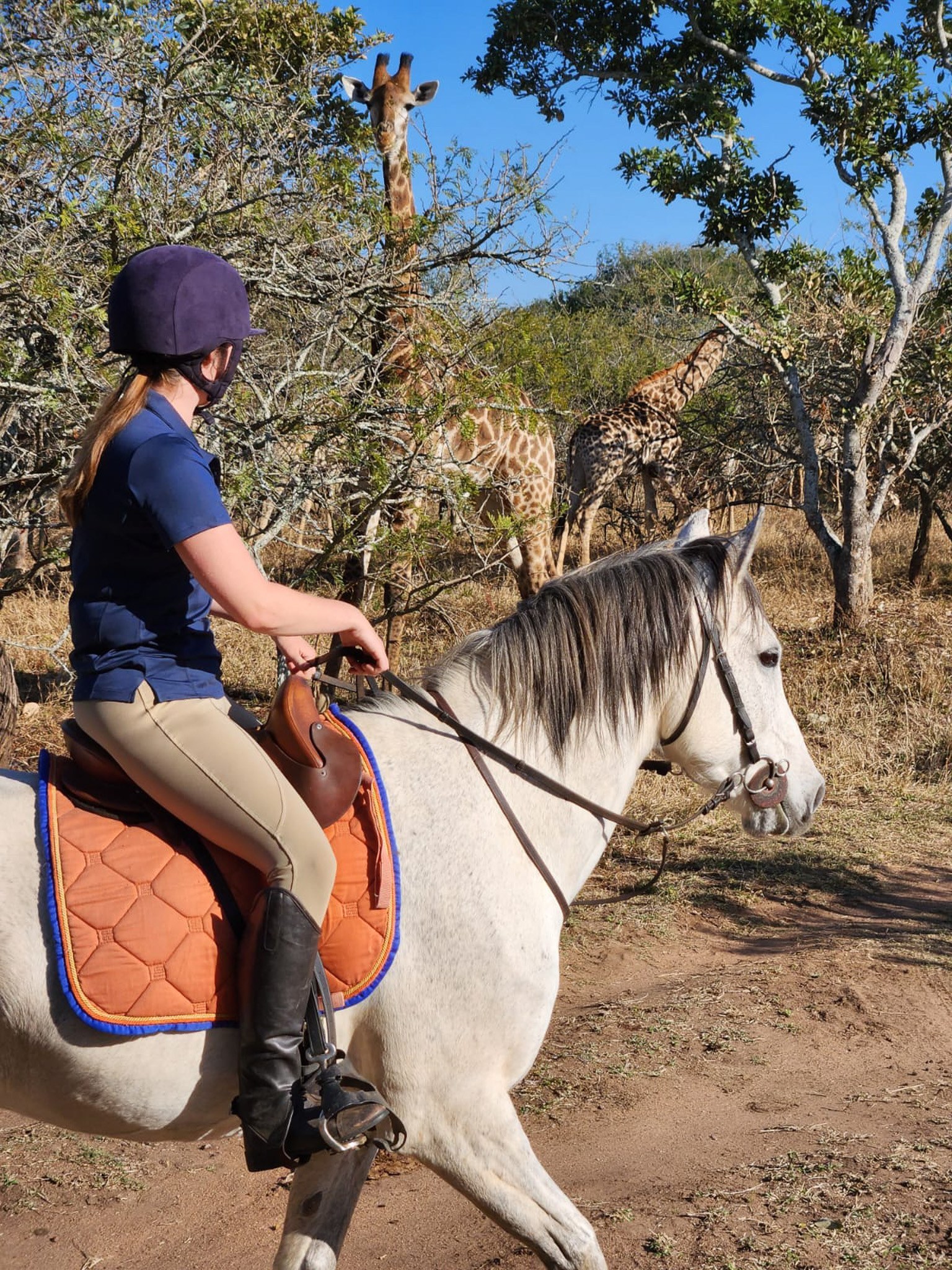 Das Gewichtslimit liegt bei 80 Kilogramm. Anforderungen an dich Du solltest mindestens 5 bis 7 Jahre durchgängige und aktuelle Reiterfahrung besitzen und dich im Umgang mit Pferden wohl fühlen. Vor Ort wird ausschließlich englisch gesprochen, daher solltest du die Sprache verstehen und sprechen können. Altersempfehlung Erfahrene Reiter:innen ab 18 Jahren können am Programm teilnehmen. Aufenthaltsdauer Die Mindestaufenthaltsdauer liegt bei 2 Wochen. Die maximale Aufenthaltsdauer mit einem Touristenvisum liegt bei 12 Wochen. Umgebung Wild Ride Horse Safaris hat seinen Sitz in der Provinz Mpumalanga, ca. 2 Autostunden von Johannesburg entfernt. Gelände/Landschaft/Tiere Die Tierwelt, zu der Leoparden, Hyänen, Giraffen, Elenantilopen, Rappenantilopen, Oribis, Blessböcke und viele andere Arten gehören, bewegt sich frei. Es ist immer etwas Besonderes, Honigdachse und Stachelschweine zu sehen, abgesehen von über 302 Vogelarten, darunter der Afrikanische Finfoot, der Südliche Waldrapp, Denhams Trappe und Sekretärvögel. Das Reservat wurde aufgrund seiner Flora und Fauna zum Schutzgebiet erklärt. Nicht viele Reservate können sich dieser Auszeichnung rühmen! Im November 2024 sollen Geparden eingeführt werden und es gibt bereits eine gesunde Anzahl von Leoparden, Servils usw. Da es ein Schutzgebiet ist, sollen gegen Ende 2025 vielleicht auch Breitmaulnashörner eingegliedert werden. Besuche im nahegelegenen Krüger-Nationalpark können (gegen Aufpreis) arrangiert werden. Hier gibt es dann die Chance, alle der "Big 5" anzutreffen Klima Subtropisch: Winter 8°C-22°C, Sommer 18°C-40°C An/Abreise An- und Abreise Montags. Mit dem Flugzeug nach Johannesburg zum OR Tambo Flughafen. Von dort aus wird der Transfer zur Farm organisiert (ca. 900 ZAR pro Strecke zahlbar in Bar vor Ort). Zahlungsmöglichkeiten vor Ort Die Zahlung vor Ort ist nur Bar in Südafrikanischem Rand möglich. Für Transfers, Ausflüge, etc. solltet ihr ca. 7.000 - 8.000 ZAR einplanen, natürlich abhängig davon wie viele zusätzliche Ausflüge ihr machen wollt und wie lange ihr insgesamt vor Ort seid. Visum/Einreisebestimmungen Eine Einreise nach Südafrika ist für deutsche Staatsbürger mit einem gültigen Reisepass bis zu 90 Tage mit dem „visitor's visa“ möglich. Dieses wird Ihnen an der Grenze/am Flughafen ausgestellt. Ihre Reisedokumente müssen maschinenlesbar (Ausnahme gilt für bei Verlust/Diebstahl ausgestellte Ersatzdokumente) sowie mindestens 30 Tage über die Reise hinaus gültig sein und müssen auch bei Ausreise noch über mindestens zwei freie Seiten für Visastempel verfügen. Des Weiteren sollten Sie über ein gültiges Rückflugticket verfügen. Südafrika hat ein neues Online-Einwanderungsformular eingeführt. Jeder Reisende kann das Einwanderungsformular über den unten stehenden Online-Link ausfüllen. Dabei handelt es sich um ein neues System, das eingeführt wurde, um die Einwanderung an den internationalen Flughäfen zu beschleunigen. Das Formular kann 2 Tagen vor Ankunft/Abreise ausgefüllt und eingereicht werden. Die Bestätigungsmail sollten Sie in ausgedruckter Form oder digital auf dem Smartphone bei Einreise dabei haben. Dies wird im System protokolliert und angezeigt, wenn ihre Pässe beim Zoll und der Einwanderungsbehörde gescannt werden. Link: https://tools.sars.gov.za/sarsonlinequery/traveller Sicherheit und Versicherung Alle Reiter müssen eine passende Reisekrankenversicherung abgeschlossen haben. Bei Ankunft müssen alle Gäste eine Risikoabtretung ausfüllen. Eine gültige Kreditkarte zur Deckung unvorhergesehener Notfälle ist wichtig. Dies wird verwendet, um den unwahrscheinlichen Fall abzudecken, dass du ins Krankenhaus musst, wenn du einen schweren Sturz von einem Pferd hast. Die Krankenhäuser in unserer Umgebung verlangen eine Vorauszahlung. Diesen Betrag kannst du von deiner Reiseversicherung zurückfordern. Wir empfehlen das Tragen und die Mitnahme eines eigenen Reithelms. Gesundheit Für die direkte Einreise aus Deutschland sind laut Auswärtigem Amt keine Pflichtimpfungen vorgeschrieben. Achte darauf, dass sich die Standardimpfungen, insbesondere Tetanus, gemäß Impfkalender des Robert-Koch-Instituts auf dem aktuellen Stand befinden. Als Reiseimpfungen werden laut Auswärtigem Amt Impfungen gegen Hepatitis A, bei Langzeitaufenthalt oder besonderer Exposition auch gegen Hepatitis B und Tollwut empfohlen (z.B. Selbstfahrer unter Campingbedingungen, Kontakt zu Wildtieren oder Projektarbeit im Tierschutz). Gesonderte Zahlungsbedingungen Bitte beachte, dass für dieses Programm gesonderte Zahlungsbedingungen gelten. Die Höhe der Anzahlung beträgt 50% des Reisepreises, fällig bei Buchung. Der Restbetrag wird 56 Tage vor Anreise fällig. Enthaltene Leistungen