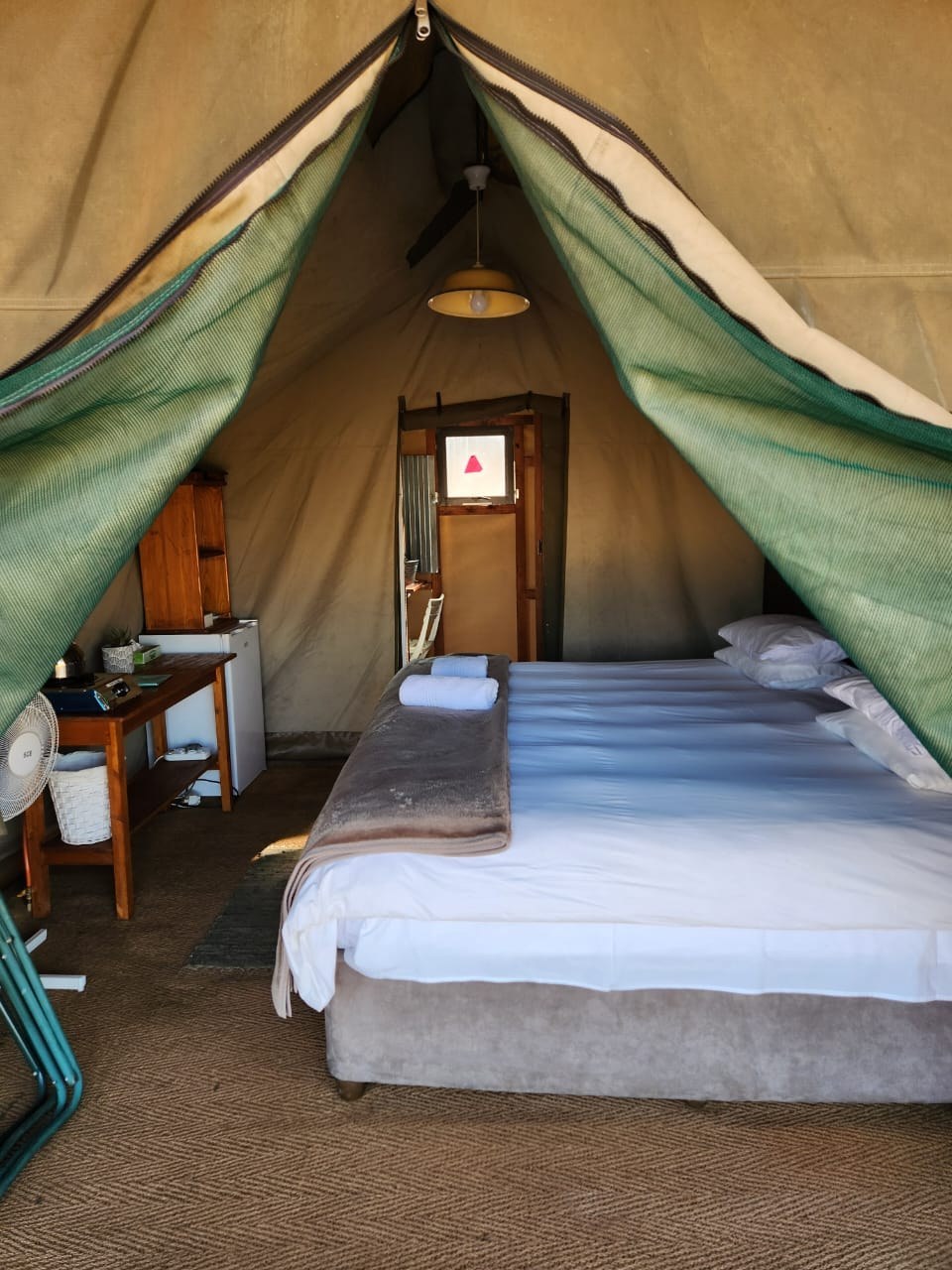 Die Unterkunft erfolgt in geräumigen Safarizelten mit je zwei Einzelbetten. Jedes Zelt hat eine eigene kleine Veranda und ein eigenes Badezimmer. Im großen Hauptgebäude befinden sich die Gemeinschaftsbereiche mit Essbereich, Swimmingpool und eine Bibliothek voller Bücher über Pferde und/oder Wildtiere sowie Romane, und auch viele Brettspiele, mit denen das Team sich abends beschäftigen kann. Es gibt Strom und W-Lan im Camp, jedoch ist Südafrika von häufigen Stromausfällen betroffen daher ist die Versorgung nicht immer so stabil wie in Deutschland. Die Qualität des W-Lans kann stark schwanken, für WhatsApp reicht es aber in der Regel :-). Verpflegung Alle Mahlzeiten sind im Preis inbegriffen. Beim Frühstück und Mittagessen wird „Selbstbedienung“ angeboten, das Abendessen wird jeden Abend für das Team gekocht. Die Mahlzeiten sind ausgewogen und wir können die meisten Diätwünsche berücksichtigen. Die Küche ist gut ausgestattet, es gibt Kühlschränke, Tiefkühltruhe, Mikrowelle. Außerdem gibt es einen Herd mit Backofen sowie sämtliches Besteck und Geschirr.