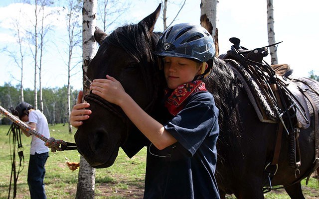 Es gibt einen starken Pferdebezug in unserem Kinderprogramm. Für jüngere Kinder, die mehr über Pferde lernen wollen, bieten wir Pferdepflege und Ponyreiten an. Kinder, die ihr Pferd sicher kontrollieren können, können Ihre Eltern gerne auf den Ausritten begleiten oder Sie können auf der Ranch bleiben und dort reiten.