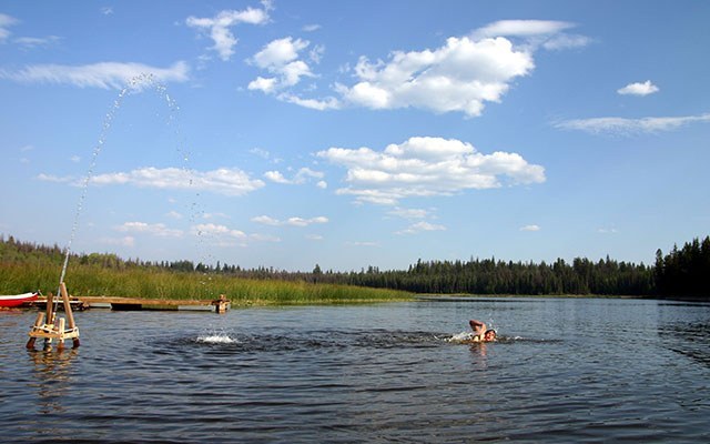 Kanufahren: Entdecken Sie den Siwash See vom Wasser aus. Sonnen Sie sich, baden Sie im kirstallklaren, tiefen Wasser, hören Sie die Rufe der Seetaucher und inhalieren Sie den süßen Duft der Kiefern.