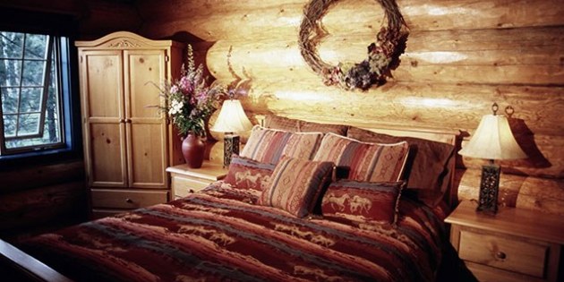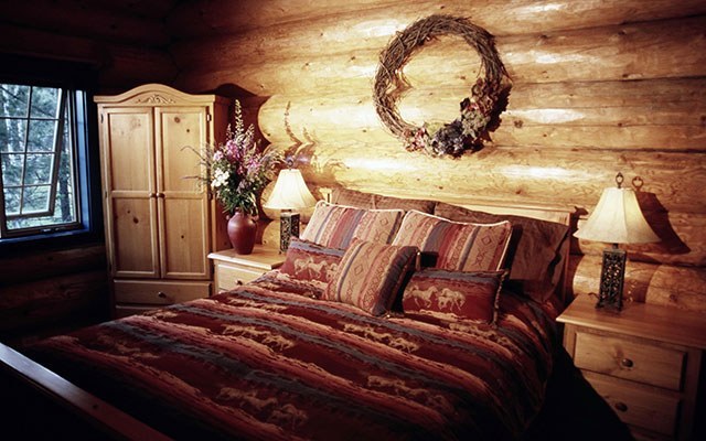 Dieses charmante Zimmer mit gemütlichen Holzwänden, Dekoration im Cowboy Stil und einem Blick über Baumgruppen liegt über der Bibliothek und besitzt ein Queen Size Bett und ein eigenes Badezimmer.
