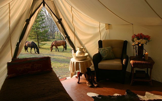 Erleben Sie einen einzigartigen Reittag und genießen Sie am Abend ausgewählte Mahlzeiten und vollkommenen Komfort – geschmackvolles Ranchleben, biologisch angebautes Essen und Schlafen auf feinstem Leinen.