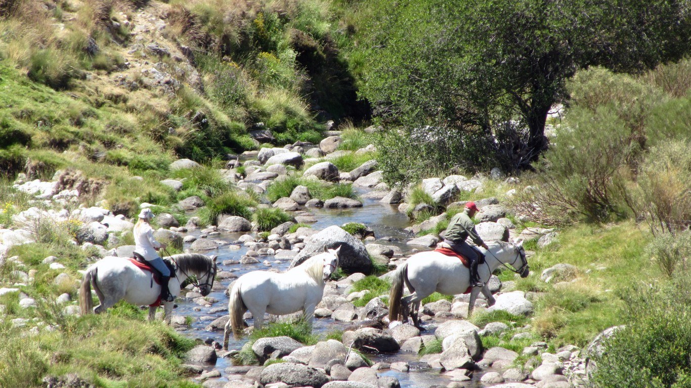 2 bis maximal 8 Reiter plus Guide. Auf allen Ritten werden Sie durch erfahrene Guides begleitet. Länge der Ritte Insgesamt ca. 150km. Es wird täglich zwischen 4 und 7 Stunden geritten. Gewicht Das Gewichtslimit liegt bei 90 kg. Reiterliche Anforderungen Dieser Ritt ist nur für erfahrene Reiter geeignet. Sie sollten in allen Gangarten mit unabhängigem Sitz und ruhigen Händen reiten können und sich für mehrere Stunden im Sattel wohl fühlen. Das Tragen eines Reithelms wird dringend empfohlen! Es gibt keine Helme zum Ausleihen, daher sollten Sie Ihren eigenen, gut passenden Reithelm mitbringen. Kinder und Nichtreiter Dieser Ritt ist für Nicht-Reiter geeignet. Diese können im Begleitfahrzeug mitfahren und die Gruppe zu den Mahlzeiten treffen. Kinder ab 10 Jahren, die gut reiten können, sind in Begleitung ihrer Eltern willkommen. Gelände/Landschaft/Tiere Der Ritt findet in den Bergen von Gredos auf ca. 1.600m Höhe statt. Wo es das Gelände erlaubt, wird auch galoppiert. Allerdings gibt es auch einige unwegsame Streckenabschnitte, auf denen nur Schritt geritten werden kann. Für die Mittagspause wird in der Regel ein schönes Plätzchen am Wasser gesucht, wo man sich in den Kristallklaren Flüssen und Lagunen abkühlen kann. Klima Das Klima ist trocken und kontinental. Im Frühling herrschen milde Temperaturen um die 18 °C mit sonnigen und bewölkten Tagen – eine ausgezeichnete Zeit zum Reiten. Die Sommer sind trocken und sonnig, die Tagestemperaturen liegen zwischen 25 und 28 °C und eignen sich gut für Picknicks am Fluss und zum Schwimmen. Der Herbst, in der Regel September und Oktober, ist die beste Zeit zum Reiten in Gredos mit Temperaturen um die 18 °C, sonnigen und bewölkten Tagen. Die Nachttemperaturen sind im Frühling und Herbst niedriger, aber die Hotels sind komfortabel und verfügen über Zentralheizung. Es herrscht keine hohe Luftfeuchtigkeit und es gibt auch keine Mücken. An-/Abreise Treffpunkt am Flughafen Madrid um 15:00. Der Transfer wird von den Gastgebern Mamen oder Emilio durchgeführt. Am Abreisetag erreichen Sie den Flughafen Madrid wieder gegen 12:00 Uhr. Visum/Einreisebestimmungen Deutsche Staatsangehörige benötigen zur Einreise nach Spanien einen gültigen Personalausweis. Gesundheit Für die Einreise nach Spanien sind laut Auswärtigem Amt keine Pflichtimpfungen vorgeschrieben. Achten Sie darauf, dass sich die Standardimpfungen gemäß Impfkalender des Robert-Koch-Instituts auf dem aktuellen Stand befinden. Als Reiseimpfung wird vom Auswärtigem Amt eine Hepatitis A-Impfung empfohlen. Sicherheit und Versicherung Am Anfang der Reitsafari wird eine Sicherheitsanweisung gegeben, wie man sich in bestimmten Situationen zu verhalten hat. Eine ausreichende Auslandskrankenversicherung, welche auch das Reiten und den Krankenrücktransport abdeckt, ist für diese Reise unerlässlich. Kleidung und Anderes Bequeme Reithosen, Reitschuhe (Boots) mit Profilsohlen, in denen Sie, wenn erforderlich auch sicher gehen können, Hemden/Blusen mit langem Arm und Kragen, Regenschutz, Handschuhe, Chaps (halblang oder lang), Reithelm, Badesachen, Sonnenbrille, starke Sonnencreme, Wasserflasche, Badekleidung Enthaltene Leistungen
