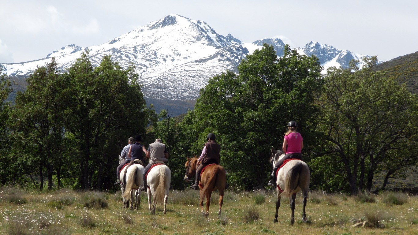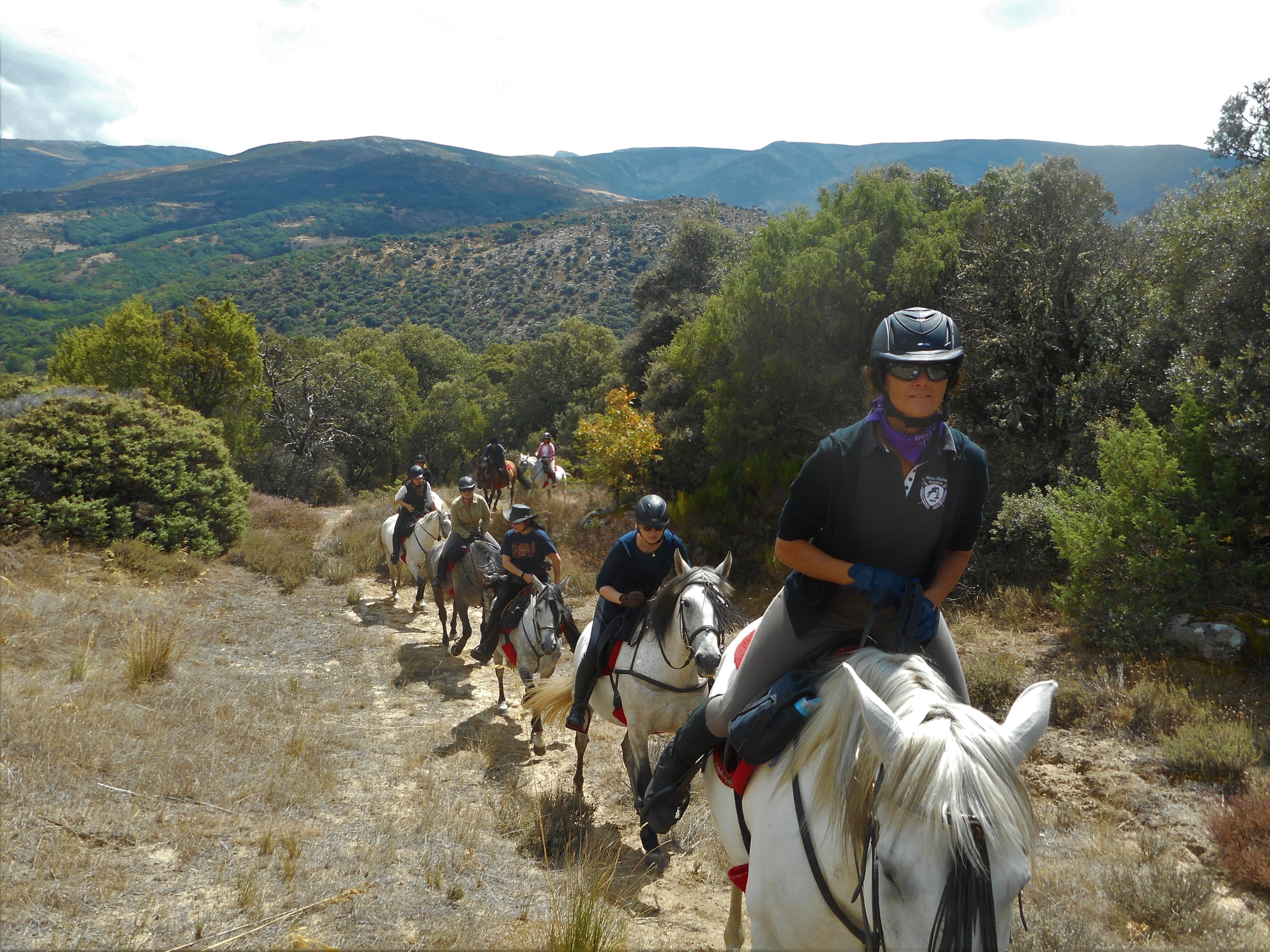 2 bis maximal 8 Reiter plus Guide. Auf allen Ritten werden Sie durch erfahrene Guides begleitet. Länge der Ritte Insgesamt ca. 150km. Es wird täglich zwischen 4 und 7 Stunden geritten. Gewicht Das Gewichtslimit liegt bei 90 kg. Reiterliche Anforderungen Dieser Ritt ist nur für erfahrene Reiter geeignet. Sie sollten in allen Gangarten mit unabhängigem Sitz und ruhigen Händen reiten können und sich für mehrere Stunden im Sattel wohl fühlen. Das Tragen eines Reithelms wird dringend empfohlen! Es gibt keine Helme zum Ausleihen, daher sollten Sie Ihren eigenen, gut passenden Reithelm mitbringen. Kinder und Nichtreiter Dieser Ritt ist für Nicht-Reiter geeignet. Diese können im Begleitfahrzeug mitfahren und die Gruppe zu den Mahlzeiten treffen. Kinder ab 10 Jahren, die gut reiten können, sind in Begleitung ihrer Eltern willkommen. Gelände/Landschaft/Tiere Der Ritt findet in den Bergen von Gredos auf ca. 1.600m Höhe statt. Wo es das Gelände erlaubt, wird auch galoppiert. Allerdings gibt es auch einige unwegsame Streckenabschnitte, auf denen nur Schritt geritten werden kann. Für die Mittagspause wird in der Regel ein schönes Plätzchen am Wasser gesucht, wo man sich in den Kristallklaren Flüssen und Lagunen abkühlen kann. Klima Das Klima ist trocken und kontinental. Im Frühling herrschen milde Temperaturen um die 18 °C mit sonnigen und bewölkten Tagen – eine ausgezeichnete Zeit zum Reiten. Die Sommer sind trocken und sonnig, die Tagestemperaturen liegen zwischen 25 und 28 °C und eignen sich gut für Picknicks am Fluss und zum Schwimmen. Der Herbst, in der Regel September und Oktober, ist die beste Zeit zum Reiten in Gredos mit Temperaturen um die 18 °C, sonnigen und bewölkten Tagen. Die Nachttemperaturen sind im Frühling und Herbst niedriger, aber die Hotels sind komfortabel und verfügen über Zentralheizung. Es herrscht keine hohe Luftfeuchtigkeit und es gibt auch keine Mücken. An-/Abreise Treffpunkt am Flughafen Madrid um 15:00. Der Transfer wird von den Gastgebern Mamen oder Emilio durchgeführt. Am Abreisetag erreichen Sie den Flughafen Madrid wieder gegen 12:00 Uhr. Visum/Einreisebestimmungen Deutsche Staatsangehörige benötigen zur Einreise nach Spanien einen gültigen Personalausweis. Gesundheit Für die Einreise nach Spanien sind laut Auswärtigem Amt keine Pflichtimpfungen vorgeschrieben. Achten Sie darauf, dass sich die Standardimpfungen gemäß Impfkalender des Robert-Koch-Instituts auf dem aktuellen Stand befinden. Als Reiseimpfung wird vom Auswärtigem Amt eine Hepatitis A-Impfung empfohlen. Sicherheit und Versicherung Am Anfang der Reitsafari wird eine Sicherheitsanweisung gegeben, wie man sich in bestimmten Situationen zu verhalten hat. Eine ausreichende Auslandskrankenversicherung, welche auch das Reiten und den Krankenrücktransport abdeckt, ist für diese Reise unerlässlich. Kleidung und Anderes Bequeme Reithosen, Reitschuhe (Boots) mit Profilsohlen, in denen Sie, wenn erforderlich auch sicher gehen können, Hemden/Blusen mit langem Arm und Kragen, Regenschutz, Handschuhe, Chaps (halblang oder lang), Reithelm, Badesachen, Sonnenbrille, starke Sonnencreme, Wasserflasche, Badekleidung Enthaltene Leistungen