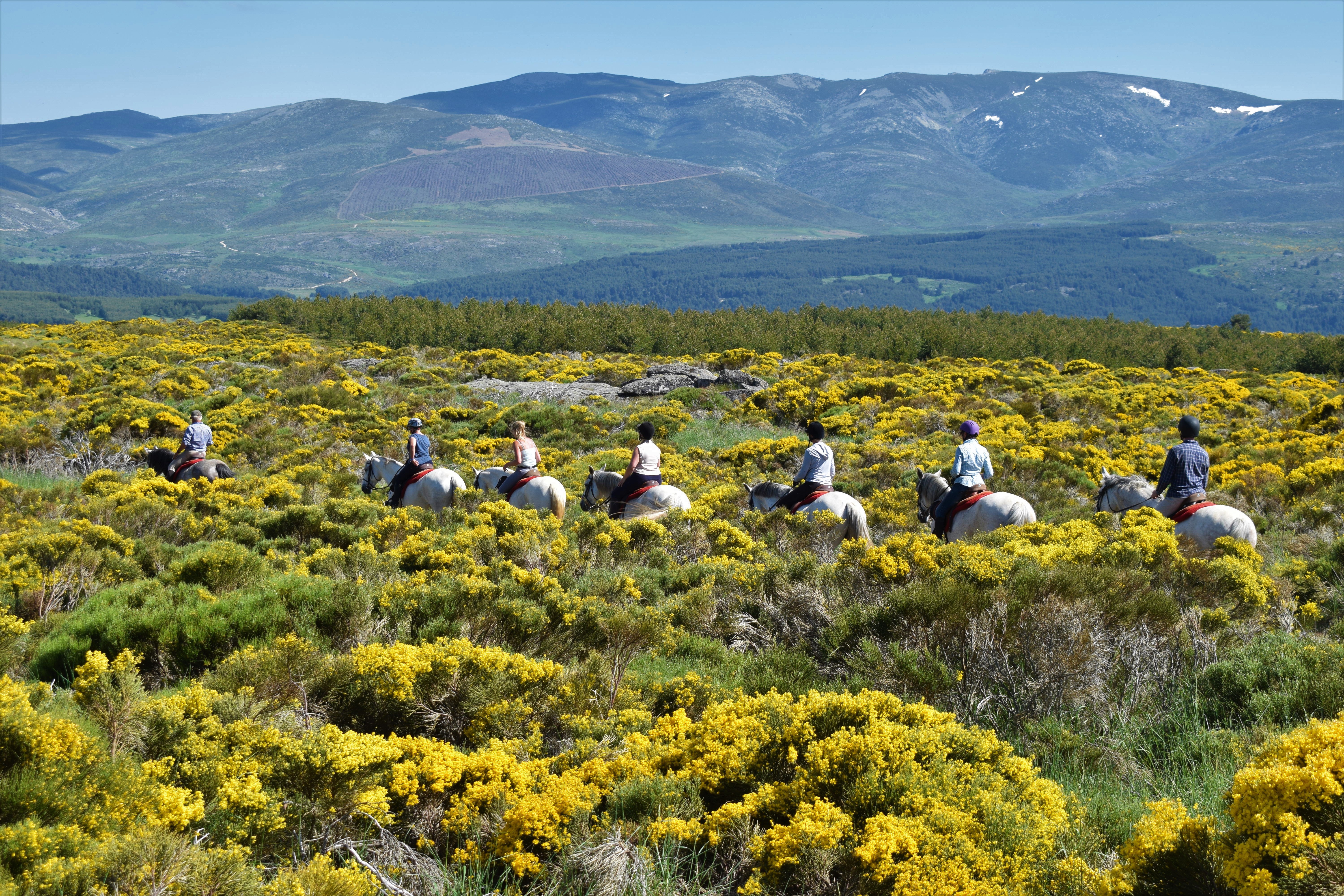 Sie genießen das natürlichste Leben, das man Pferden bieten kann. Die Herde teilt sich ein ca. 500 Hektar großes Gemeinschaftsland in den Gredos-Bergen oder auf den fruchtbaren Weiden der Dehesas der Extremadura mit Eseln, Kühen und auch Wildtieren wie Wölfen, Rehen, Hirschen, Wildschweinen und Füchsen. Geritten wird mit englischen Sattelzeug mit Silikon-Sattelbezug. Das gesamte Zaumzeug ist in ausgezeichnetem Zustand und bietet hohen Komfort für Pferd und Reiter. Jeder Sattel verfügt über eine kleine Satteltasche für die Dinge, die Sie während dem Ritt benötigen (Wasser, Sonnenschutz, etc.).